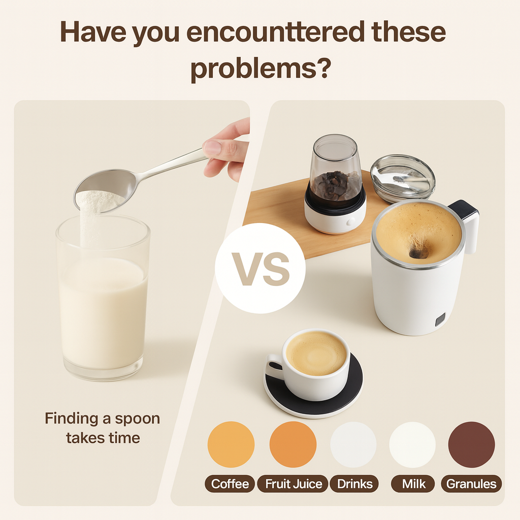No more searching for spoons, sticky mess, or clumps. Our mixer makes perfect drinks in seconds β whether itβs coffee, juice, milk, protein powder, or cocoa powder π«. Just fill, press, and enjoy!